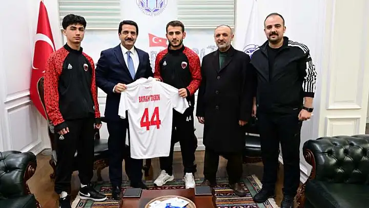 Battalgazi Belediyespor'da forma giyen ve milli takımlara seçilen futsal sporcuları Salih Öndüç ve Yusuf Efe Ataş, Battalgazi Belediye Başkanı Bayram Taşkın'ı ziyaret etti.