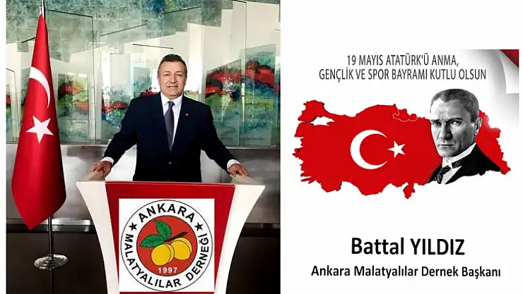 Bağımsızlığın nişanesi olan 19 Mayıs Atatürk'ü Anma, Gençlik ve Spor Bayramı'nı yürekten kutladığını ifade eden Ankara Malatyalılar Dernek Başkanı Battal Yıldız” Bağımsızlık, Cumhuriyet ve demokrasi mücadelesinin Başkomutanı Gazi Mustafa Kemal Atatürk ve silah arkadaşları ile Şehitlerimizi ve Gazilerimizi rahmetle anıyor, Cumhuriyetimizin kurucusu Gazi Mustafa Kemal Atatürk’ün Kurtuluş Savaşımızı başlatmak üzere Samsun’a çıkışının 103. yıldönümünü kutluyoruz.” dedi.